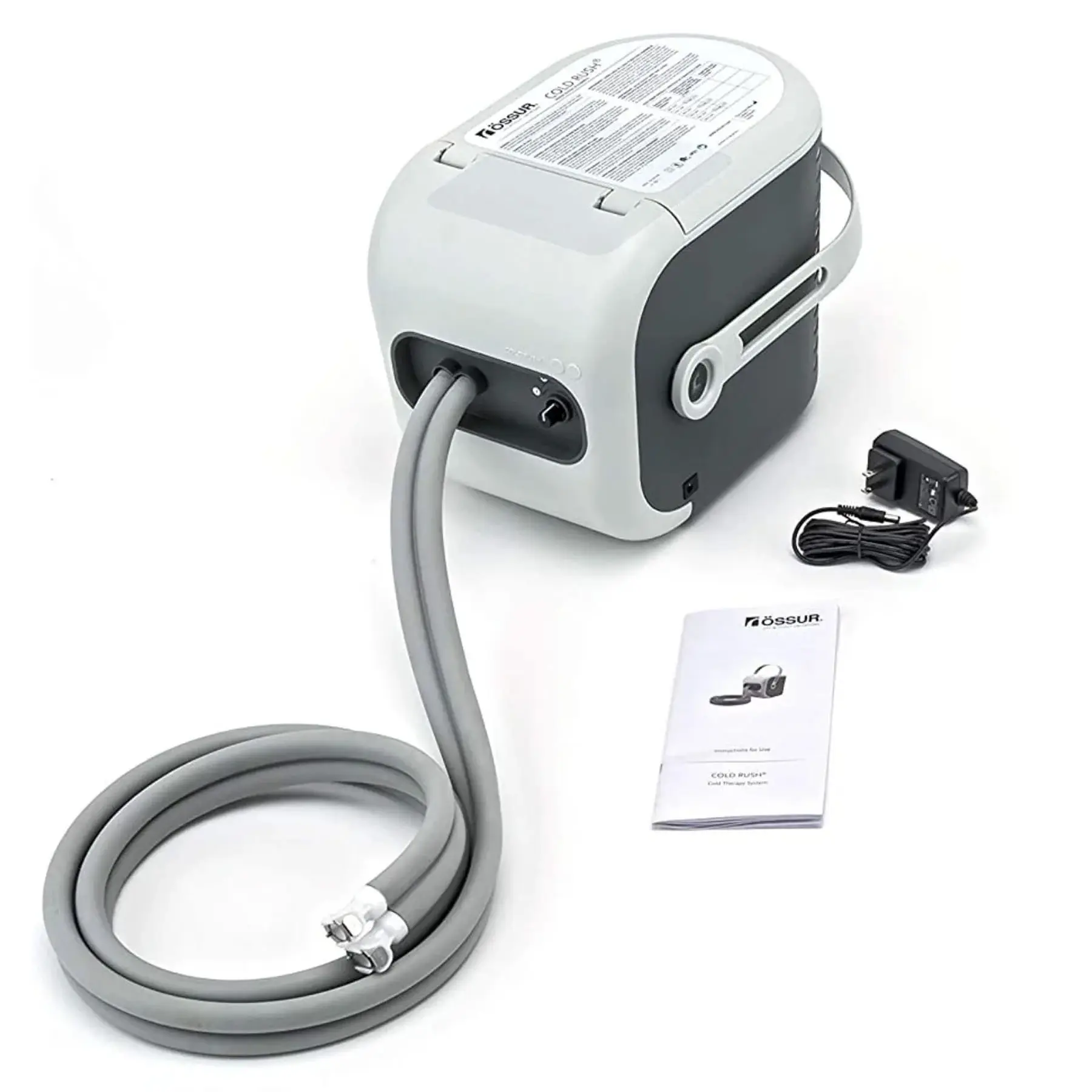 Ossur Cold Rush Therapy System provides effective localized treatment with a whisper-quiet motor, ergonomic pads, and high ice-to-water ratio for up to 6 hours of continuous cold therapy.