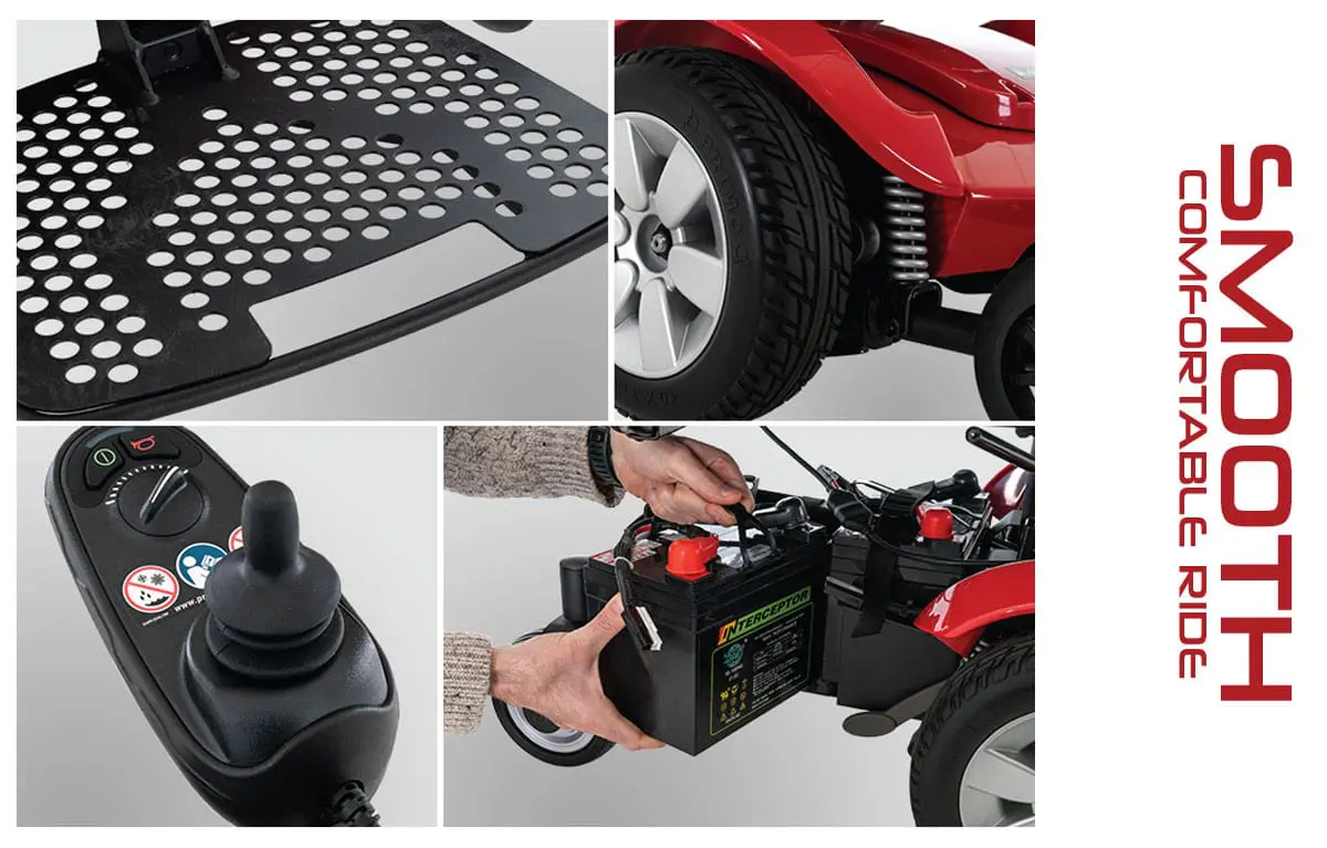Experience the simplicity and maneuverability of the Jazzy Select®. Equipped with Active-Trac® Suspension, this power chair ensures a smooth, comfortable ride over uneven terrain. Powerful dual motors provide exceptional performance and range, and mid-wheel drive offers a tight turning radius. With an easy to use controller, the Jazzy Select is a perfect choice both indoors and out.