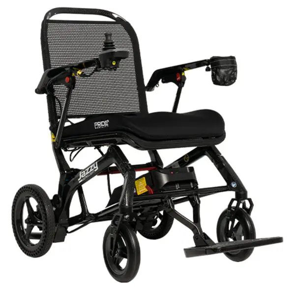 The Jazzy ® Ultra Light power wheelchair weighs a remarkable 33 pounds without the battery and offers superior durability thanks to an all-carbon fiber frame.