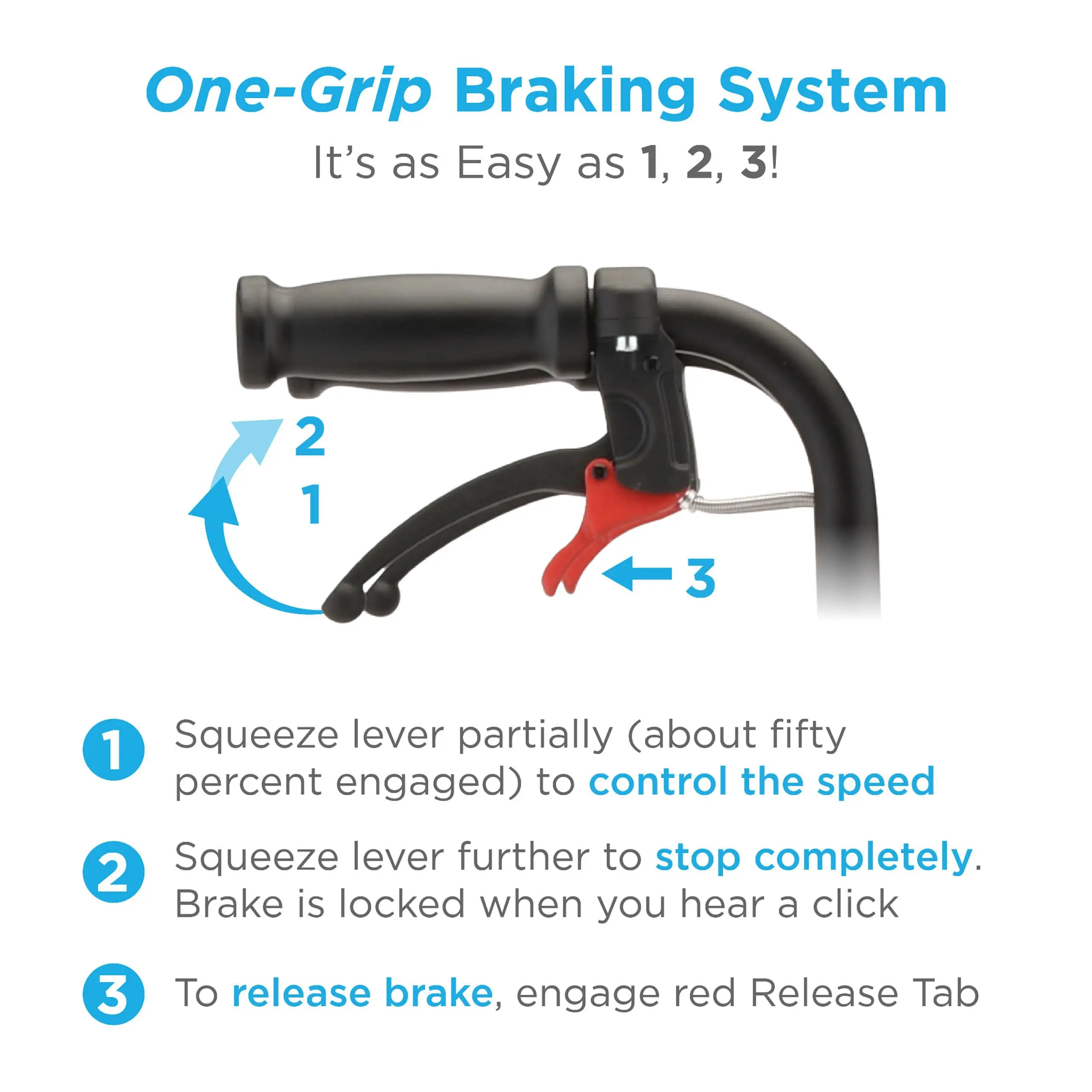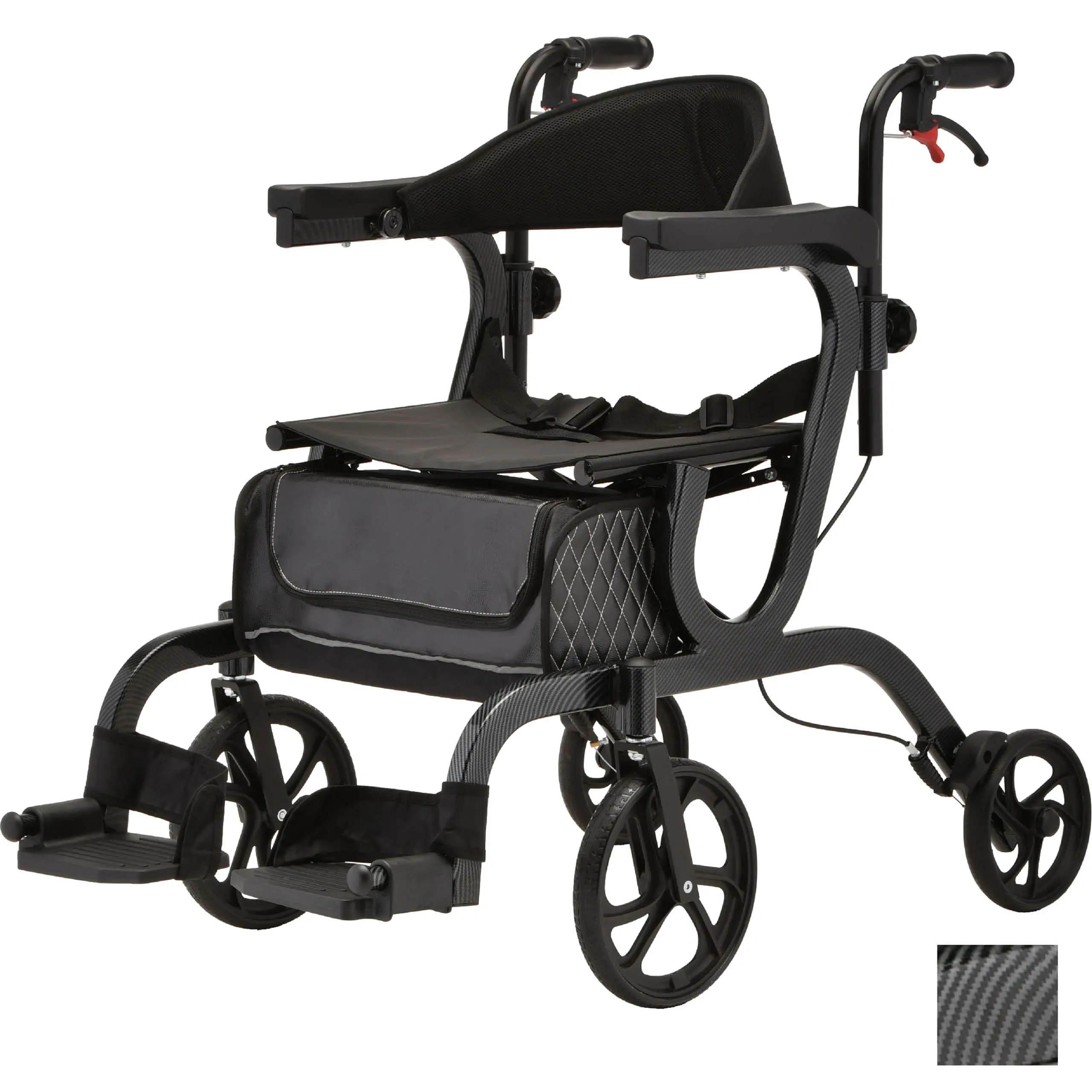 - 2-in-1 mobility aid can be easily converted from rollator into transport chair