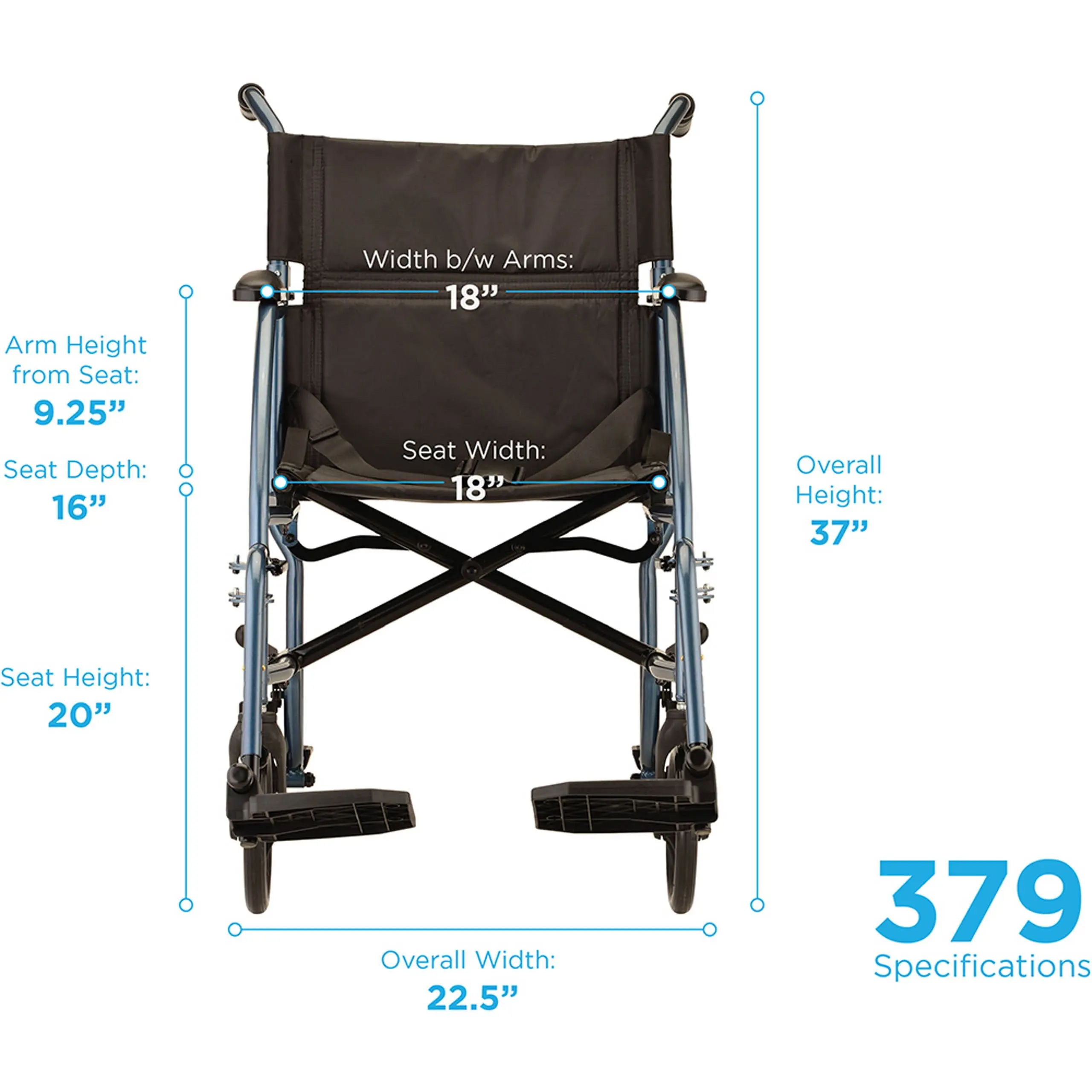 • ULTRA LIGHT AND COMPACT – Much easier for transporting and travel than a wheelchair. Our unique design makes this Transport Chair the lightest (18.75 lbs.) and most compact when folded. Strong, durable and long-lasting construction.