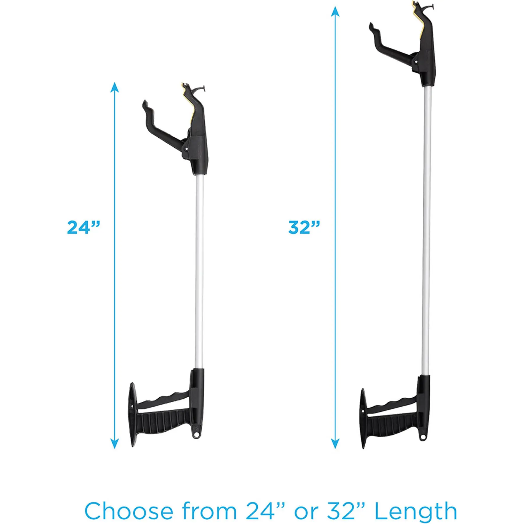 The 32 inch Dragon Reacher can retrieve dropped or hard to reach items that weigh as much as 2.5 pounds. It has an ergonomic design and is strong, lightweight and safe with no sharp edges. It can grab objects at any height and angle due to its jaw that rotates 360 degrees and patented trigger that multiplies gripping strength. The magnetic tip on the jaws of the reacher is perfect for picking up small metal objects, and a hook aids in activities such as picking up keys, shutting doors, or pulling items closer.