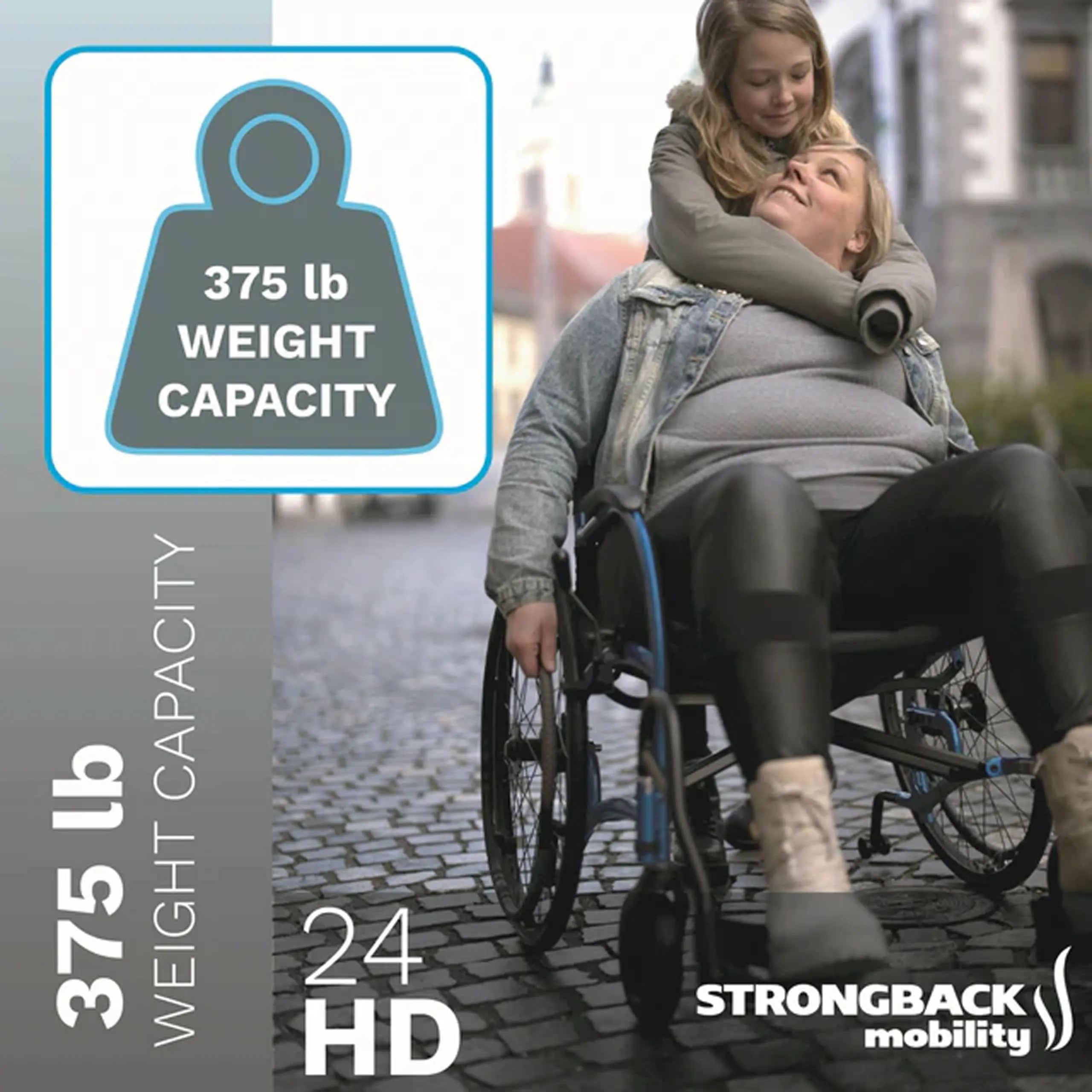 The frame of your NEW Strongback Mobility is guaranteed for 2 years against defects in manufacturing and materials. The seat, footrests, and other auxiliary parts are guaranteed for 12 months. For more details, please refer to the STRONGBACK Guarantee