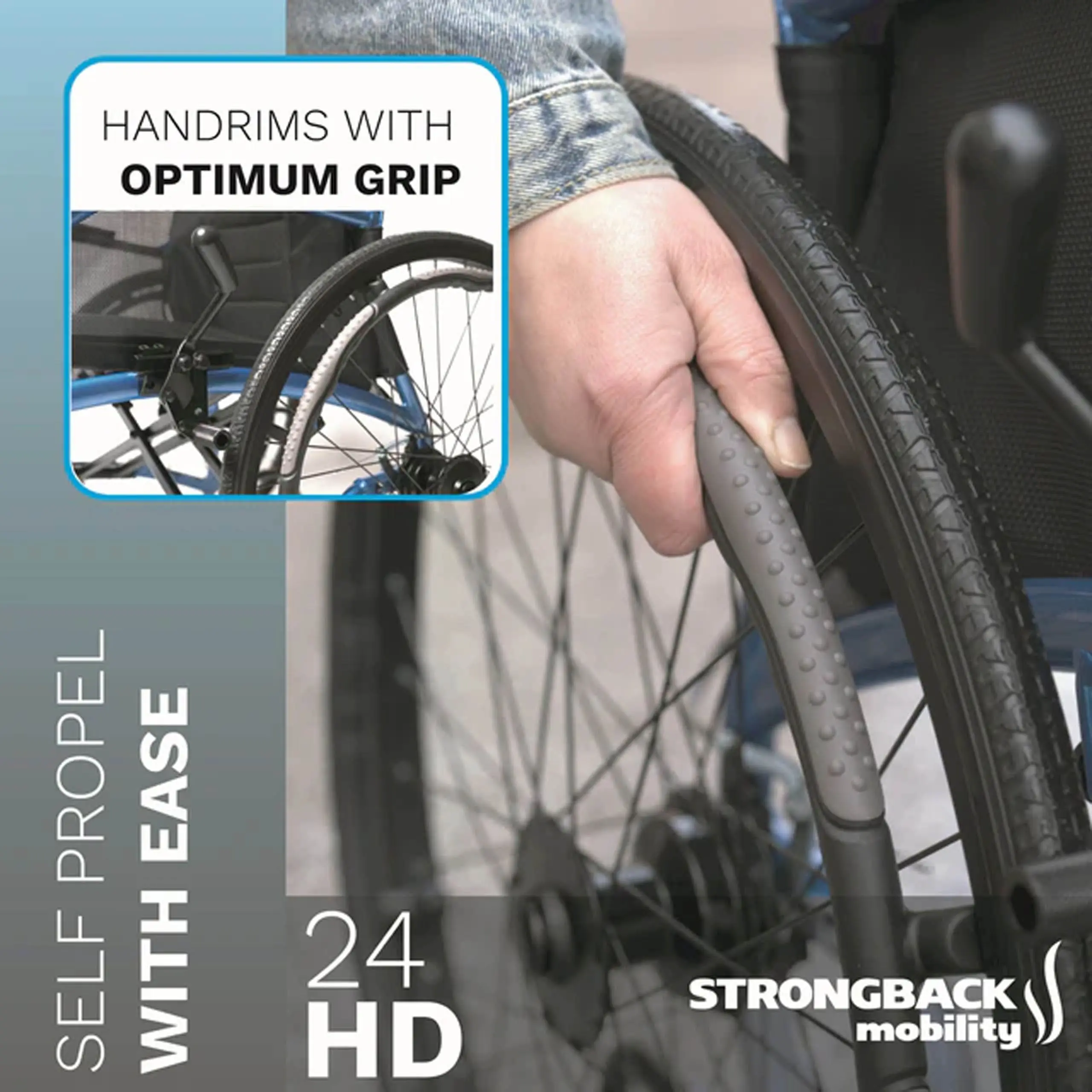 - Quick-release 24-inch rear wheels with ergonomic rims