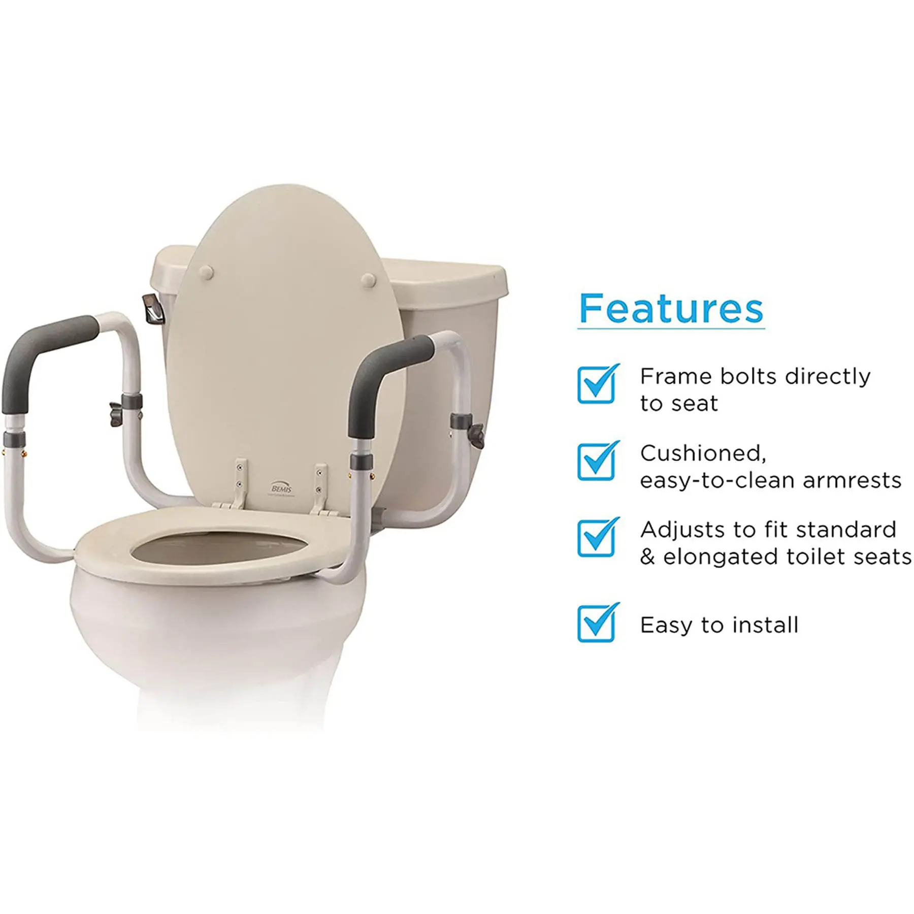 • UNIVERSAL FIT FOR ALL STANDARD & ELONGATED TOILETS. The NOVA Toilet Rails can be attached to any toilet – both standard and elongated – and can be used in conjunction with a Toilet Seat Riser.