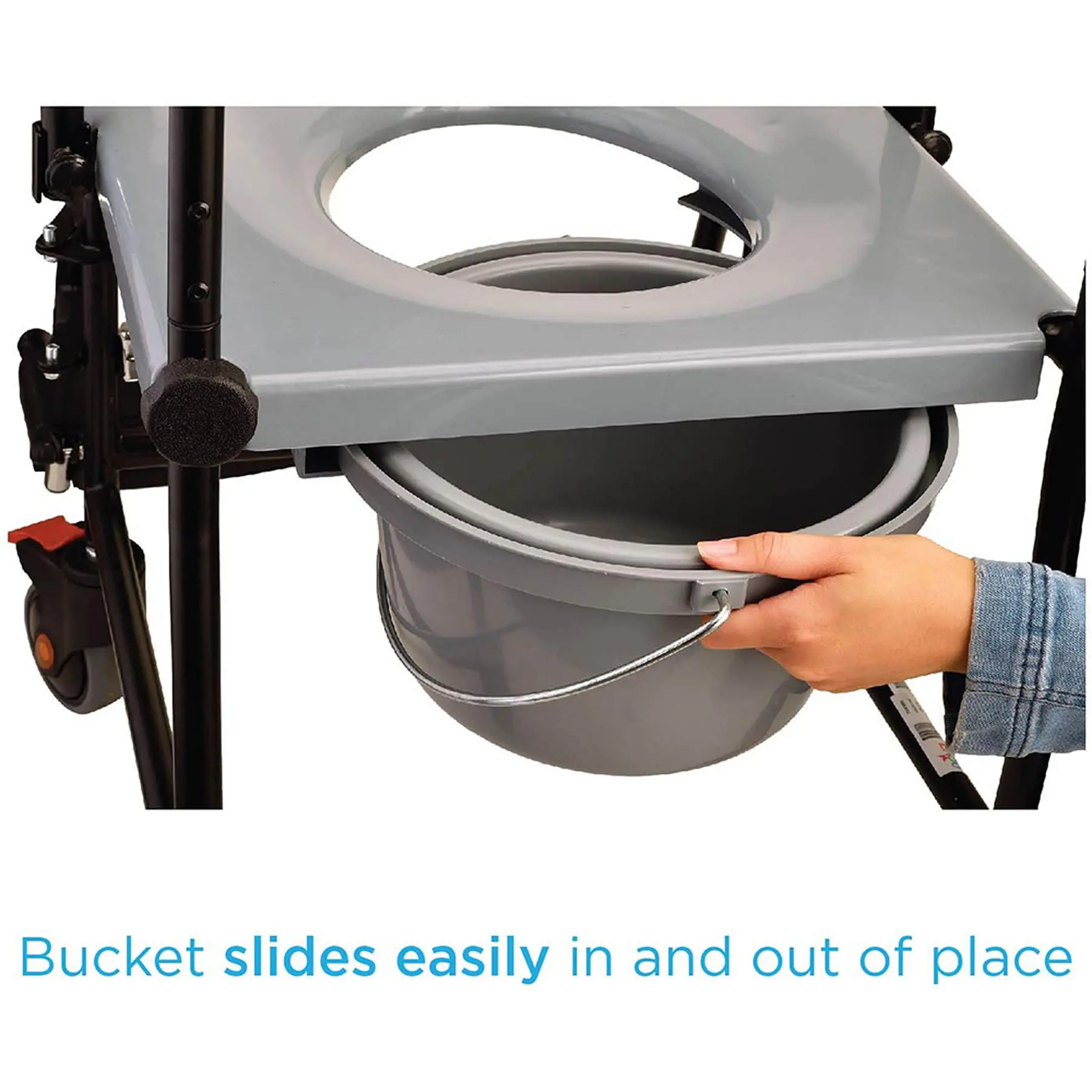 - Maximum clearance < 16.5″ undernearth bucket holder component to fit over a toilet