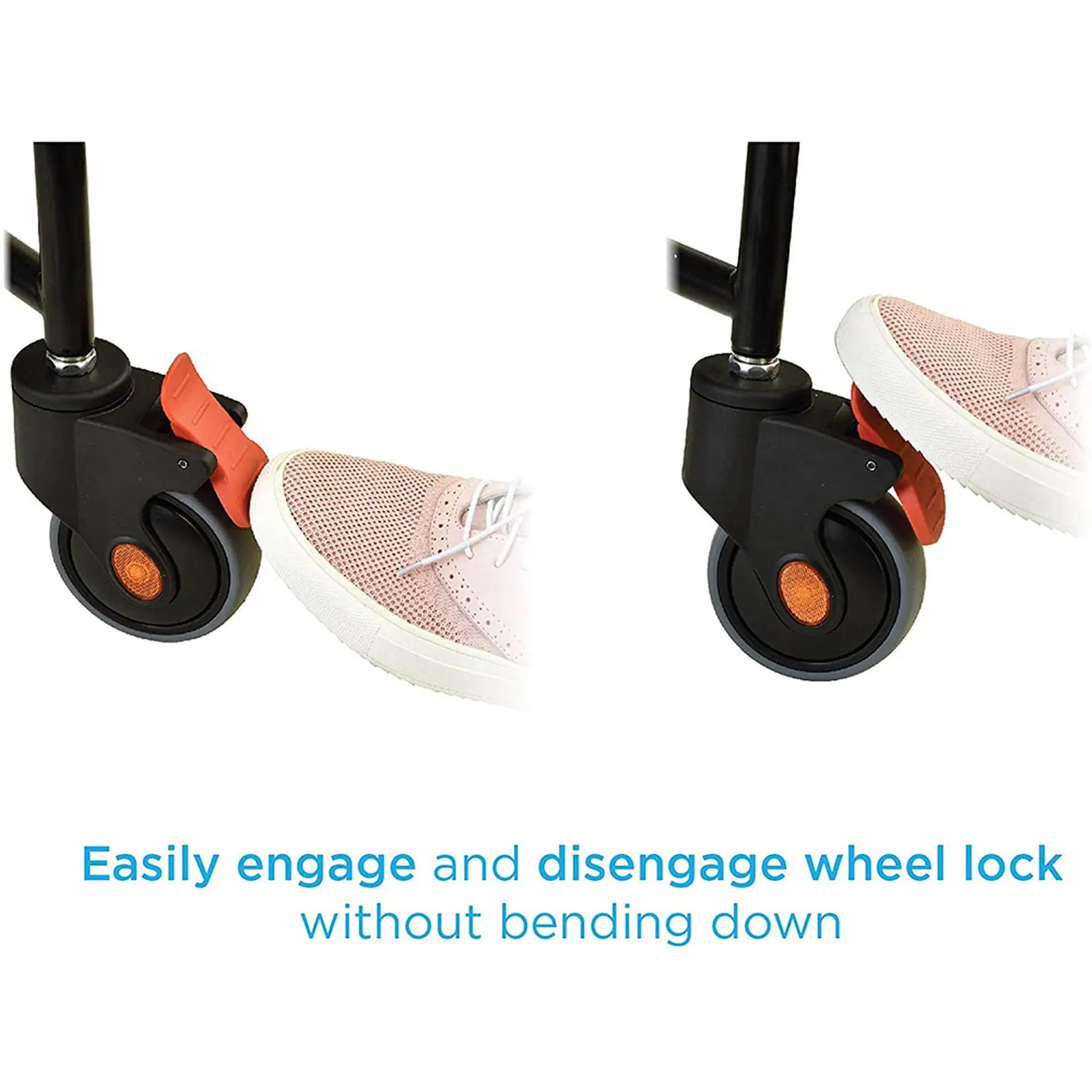 - HIGH PERFORMANCE WHEELS that are durable, easy to roll, rust resistance and with easy to engage foot petals. No need to bend to lock and unlock wheels.